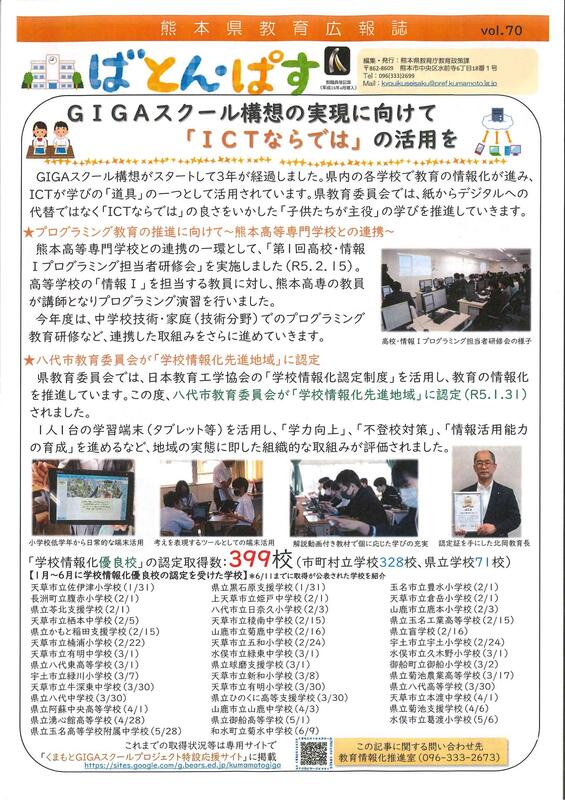 熊本県教育情報誌「ばとん・ぱすVol70」について
