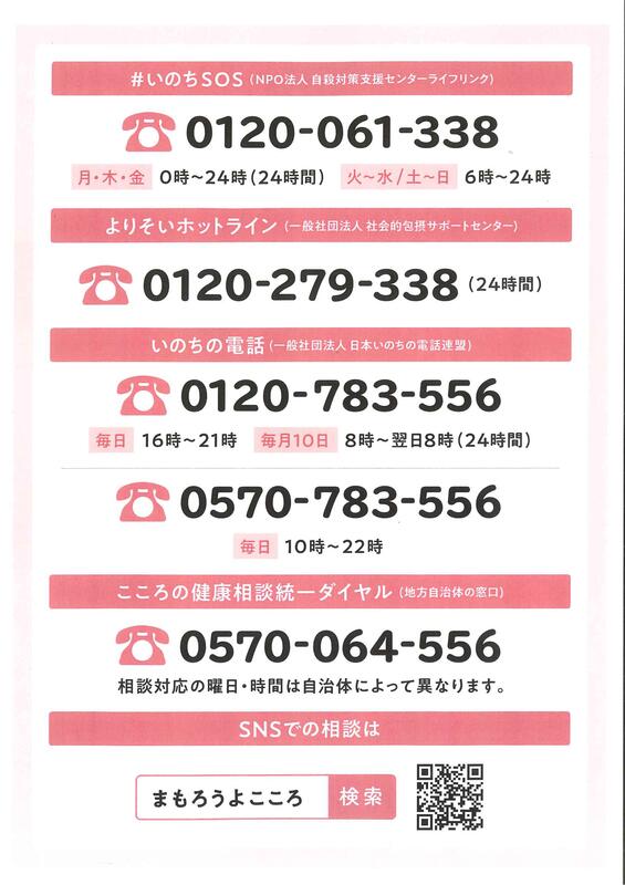 ~不安や悩みがあったら話してみよう(相談窓口紹介)~