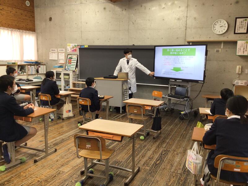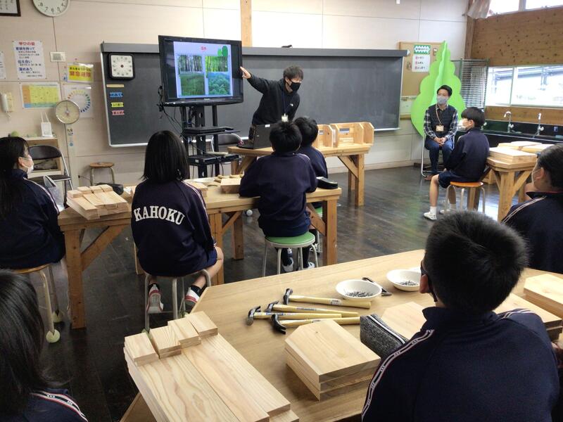 2月21日(火)に株式会社ゆうきの野中様にお仕事体験教室で鹿北の森林の話をしていただきました。