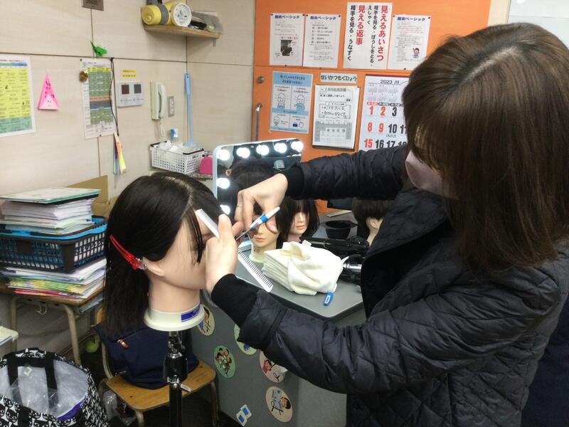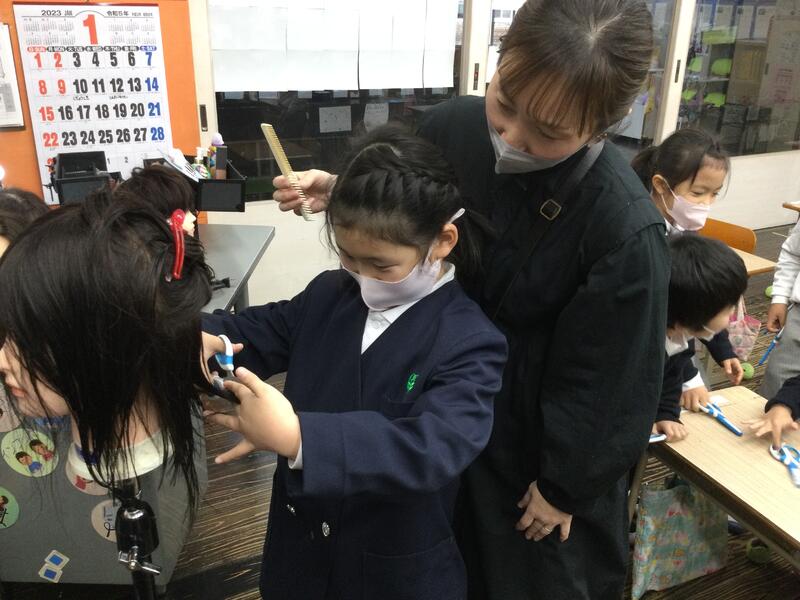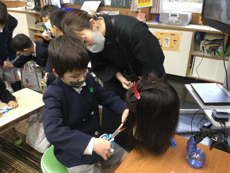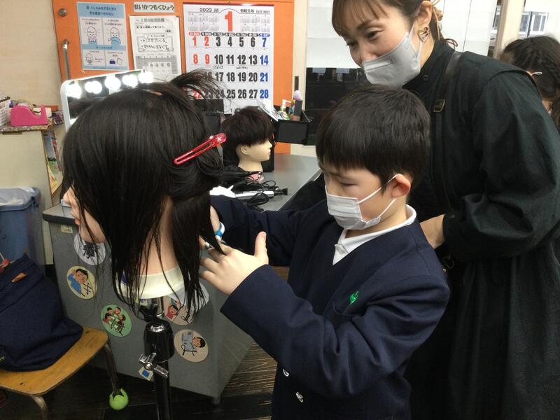 気分はみんな、美容師です。チョキン、チョキンとはさみの音が、教室に響きました。