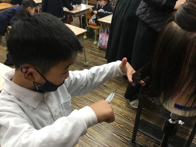 髪の毛、チョキ!チョキ!【1年生 わくわくお仕事体験】