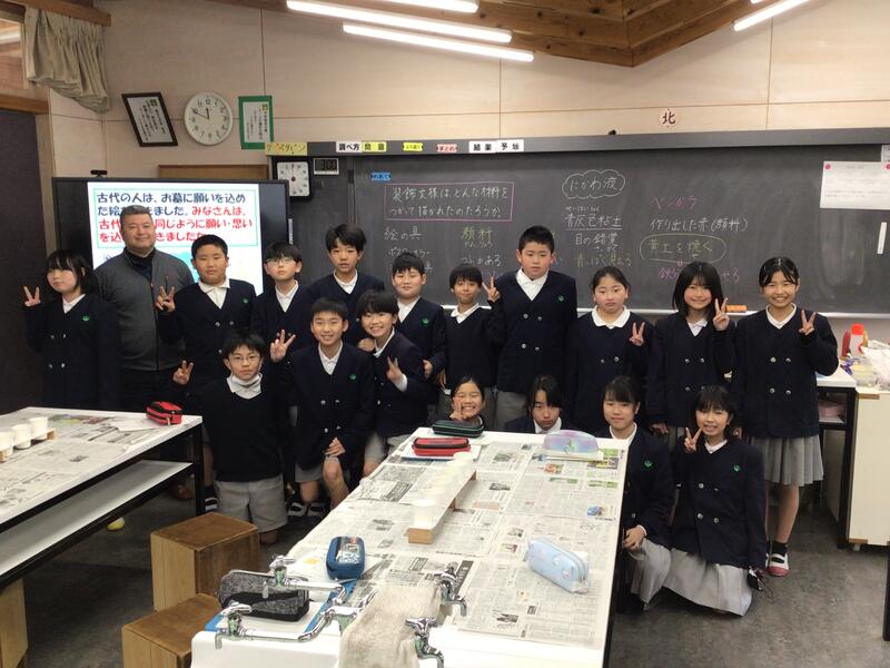 2月3日(金)に、装飾古墳館の牛島先生にきていただき、古代絵の体験をしました!