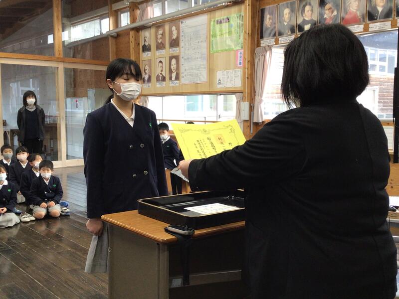 12月2日(金)の全校集会では、校長先生のお話の前に表彰が行われました。