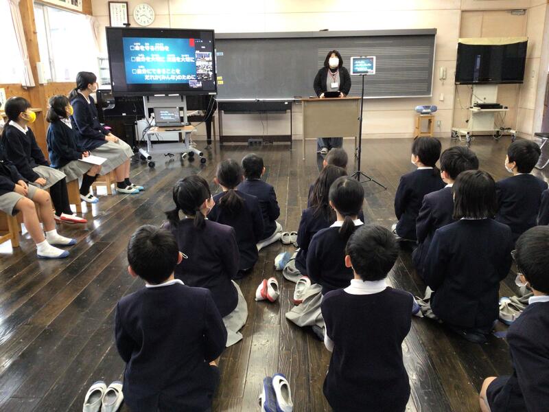 校長先生の最後のまとめでは、「自分が意識していなくても、人を傷つけていることがある」というお話がありました。子どもたちは、日頃の自分の生活と重ねてしっかり考え、とても真剣に話を聞いていました。