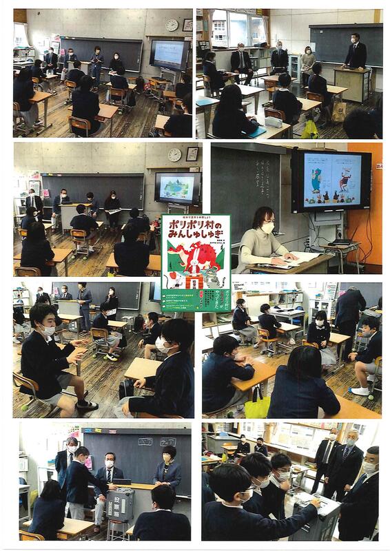 18歳になると選挙権が与えられます。6年生も、6年後には選挙権を持つことになるのです。そこで、山鹿市議会議員の皆様が、子どもたちにも民主主義についてよくわかる絵本「ポリポリ村みんしゅしゅぎ」の読み聞かせをしながら、私たちのくらしと選挙は結びついていることや、一人一人がしっかり考えて、投票することが地域を創っていくことなどを大変分かりやすく説明していただきました。
