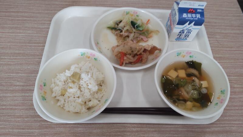 今日は鹿北の栗の入った古代米ご飯でした。甘くホクホクとした栗と、古代米のモチモチとした食感が相まっておいしかったと思います。昨日から小学校と中学校の教室を入れ替えて食べる”楽しみ給食”が始まりました。今日は中学生が「○○先生に会いに行こう♪」と嬉しそうに入っていきました。コロナ対策で一緒に向かい合って食べることはできませんが、校内で楽しく会話する小中学生を見ることができました。