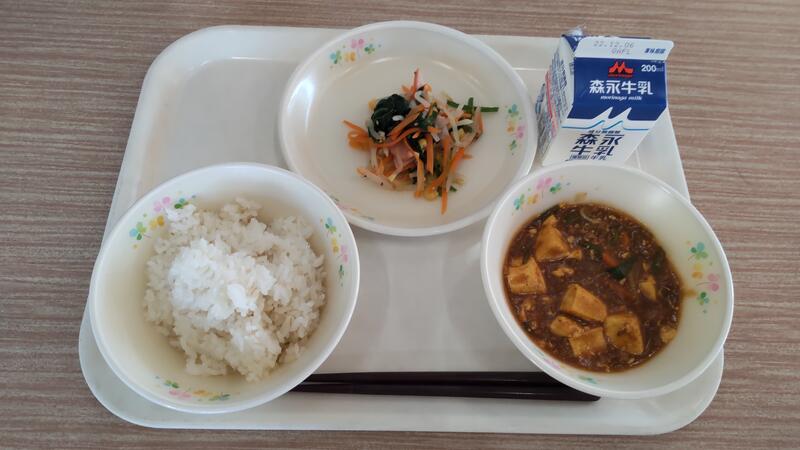 今日は6年生がハンドボールの親善試合でしたので、出発前に早い時間の昼食でも食べやすいもの、後で食べる5年生以下の児童もおいしく食べられる献立にしました。豆腐はいつも木綿豆腐を使いますが、今回は絹豆腐を使ってみました。つるっとなめらかで食べやすかったのですが、満腹感は木綿のほうがあったと思います。私は厚揚げをよく使います。煮物はもちろんのこと、豚汁やケチャップがらめなどにも合います。厚揚げを常備しているところもあるそうです。お肉替わりにつかってみてはいかがでしょうか?
