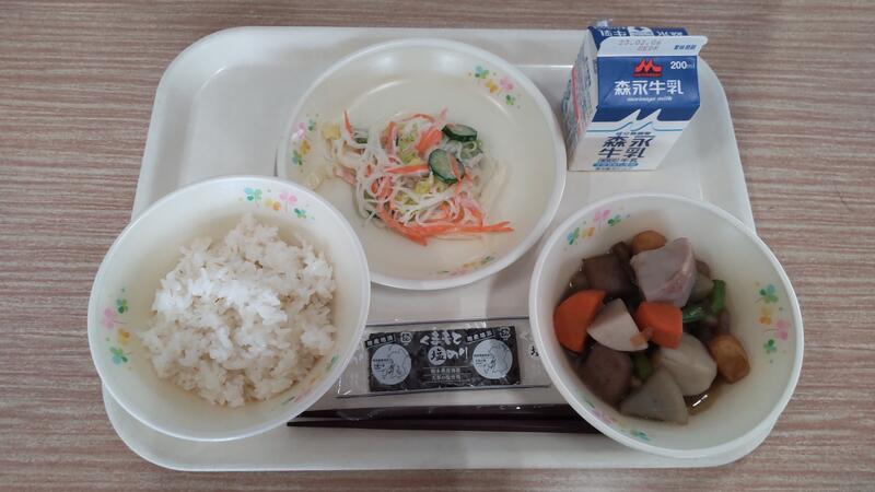 また寒さが戻ってきました。先生方に「温かい呉汁がおいしかった」という声をいただきました。呉汁は苦手な子も多いですが、鹿北の子どもたちはよく食べてくれます。先週給食のリクエストを尋ねたところ、小学校ではサイコロステーキが、中学校ではパイをのせたシチューが一番人気でした。できるだけ多くのリクエストに応えたいと思います。楽しみにしていてください。