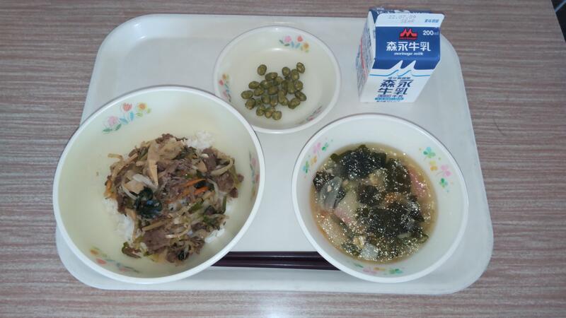 今日は人気のある手作り卵焼きでした。材料は鶏ひき肉、絹とうふ、干し椎茸、枝豆、人参です。いろいろな食感ととても食べごたえがあります。今日は実だくさんの呉汁だったのもあって、低学年の子どもたちには「もう入りません。お腹パンパンです」と言われました。私はしっとりとした卵焼きが好きです。給食は食中毒防止のため、温度をしっかり上げて加熱しますが、家では卵には水を加え、余熱で仕上げるようにしています。ぜひ試してみてください。