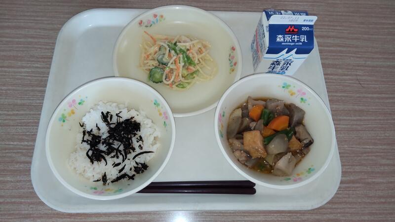 ベテランの男性の先生から「いり豆腐は自分で作ると水気が多すぎて上手くいきません。給食のはとてもおいしいですが、何かコツがあるのですか?」とお尋ねがありました。ありがたかったのですが、とても驚きました。「春雨を入れています」とお応えしました。ご飯づくりを協力し合える家って本当に素晴らしいですね。