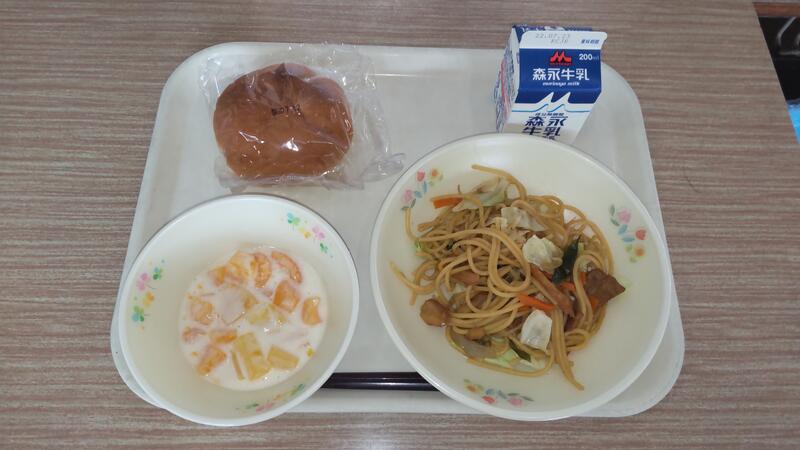 今日も焼きそばは好評でした。「麺がのびることなく、つるっとしていて食べやすかった」と嬉しい声が聞けました。一方、「フルーツヨーグルトは?」と言うと賛否両論でした。特に「透明なクニュクニュしたのが苦手」とナタデココを初めて食べた児童が多かったようです。いろいろなものを食べる経験って大事だなと思いました。