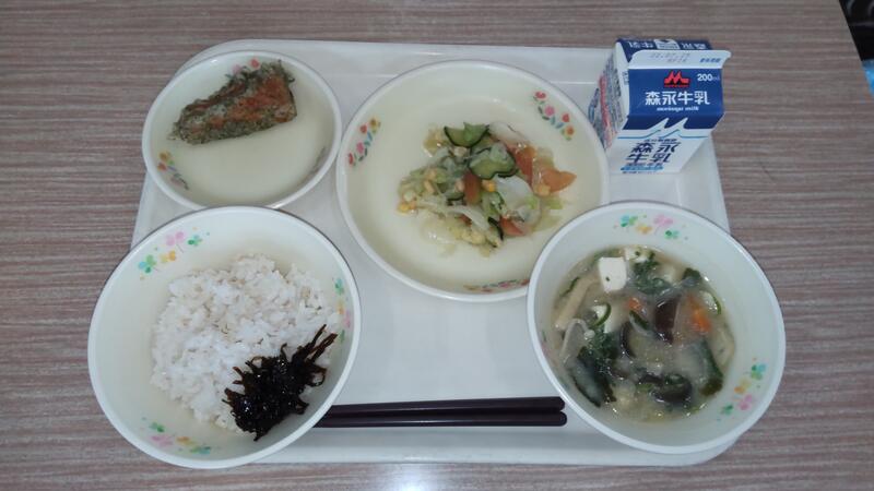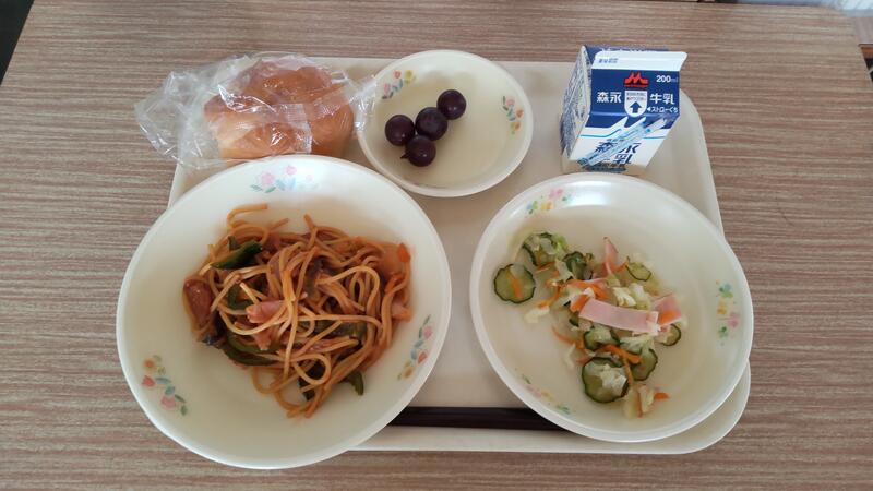 久しぶりの給食でした。「給食は野菜がたくさん食べられるなあ」と実感した人も多かったのではないでしょうか。今日は展示食を見ながら「私、ぶどうが大好きなんです」と嬉しそうに話してくれる児童がいました。私まで幸せな気持ちになり、いつもより味わって食べました。暑さで食欲がわかないときこそ「おいしそう♪」「おいしいね!」と声に出して、食欲と元気をアップさせたいものです。