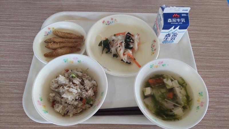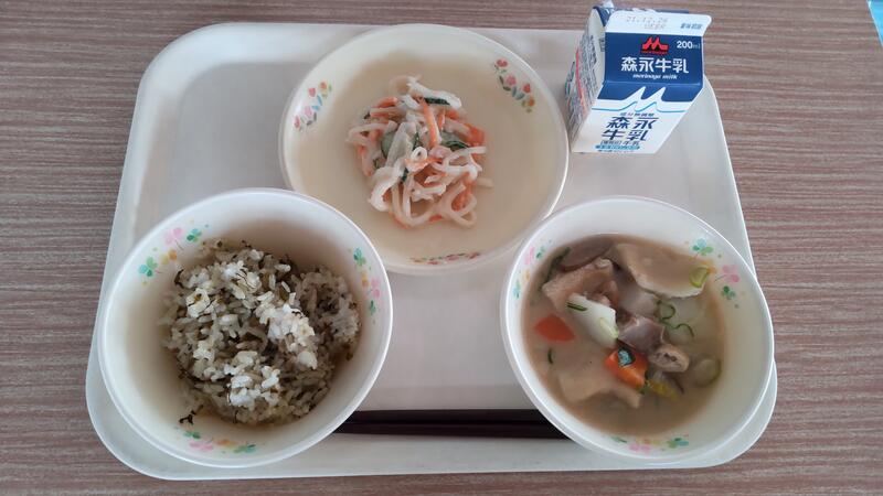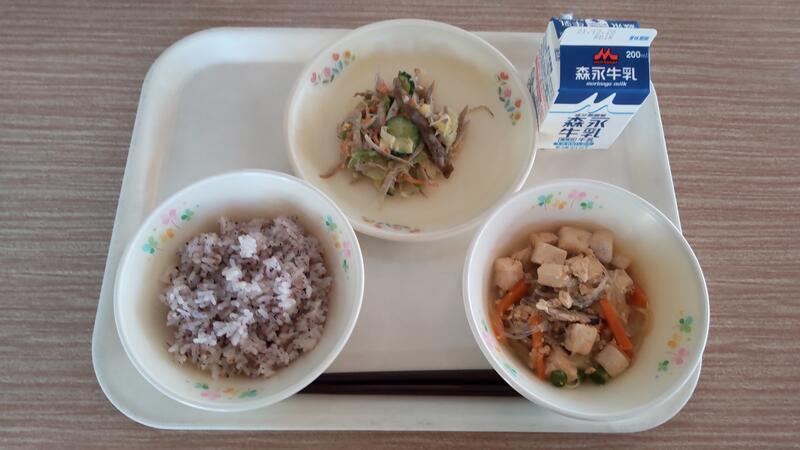 今日もカミカミ献立になりました。給食は野菜をたくさん使い、いろいろな食材を組み合わせるので必然的にかみかみ献立になることが多いです。ご飯にはほとんど毎回麦を入れます。根菜、小魚、海藻、ゴマ、豆をよく使うので、噛む回数も増えます。最近は対面で食べないので、これまで以上に食べることに集中して、よく噛んでいるようです。給食時間にもよく話しますが、噛むことはいいことづくめです。どんないいことがあるのか、ぜひ話題にして聞いてみてください。