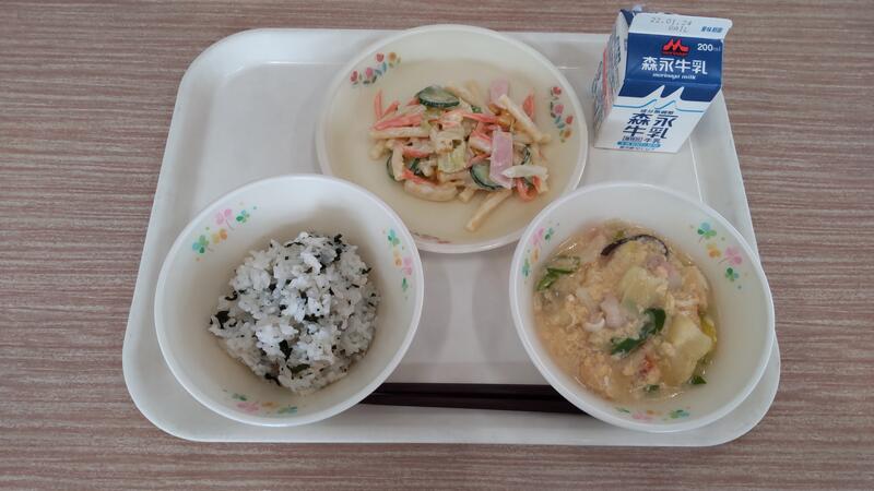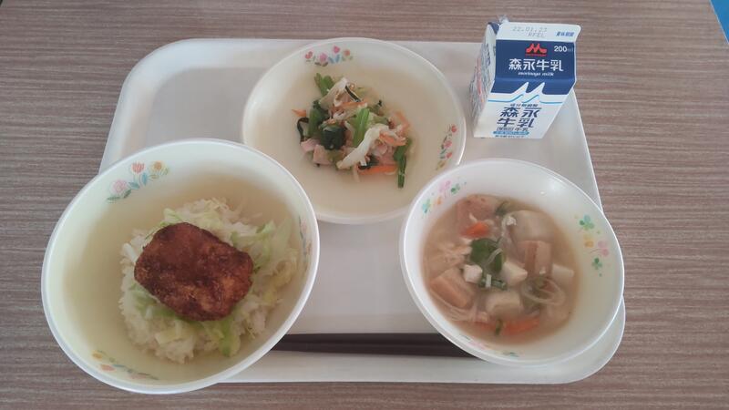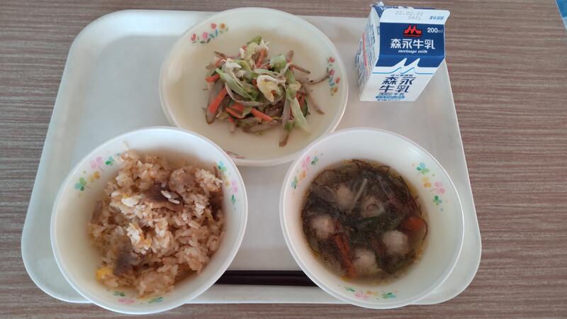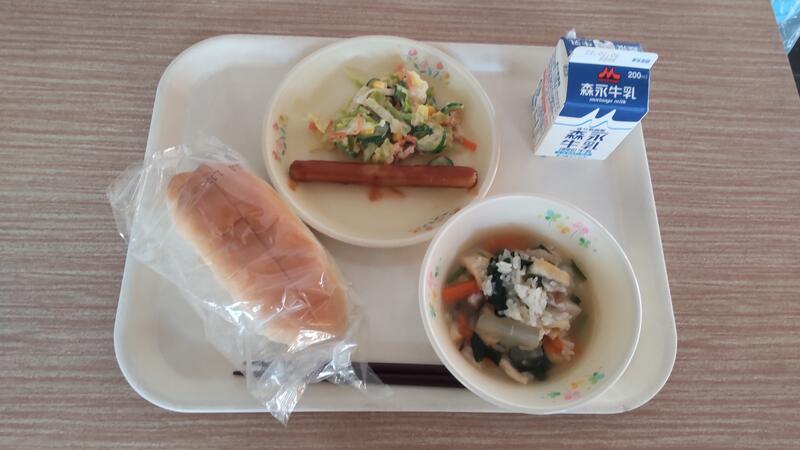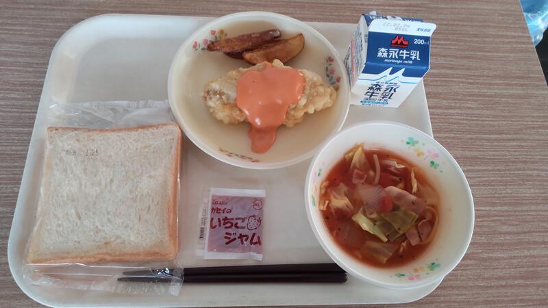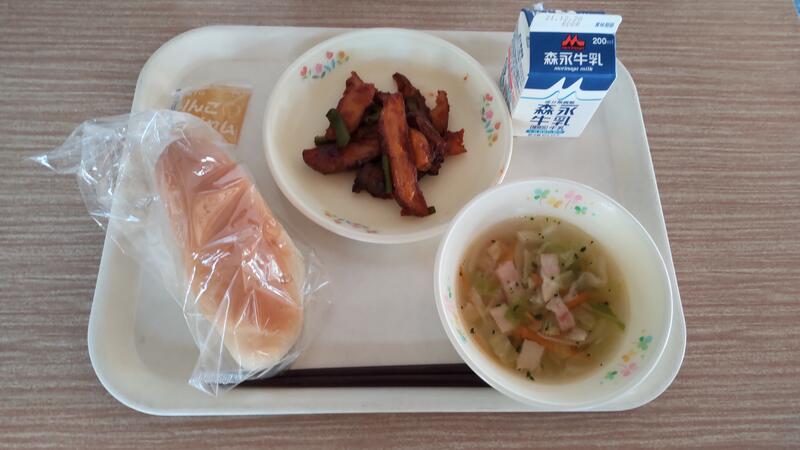 今日は揚げパンの予定でしたが、わかめご飯とコロッケに変更しました。「今日は揚げパンじゃないんですか?」と聞かれ、「わかめご飯とコロッケに変更です。揚げパンはまた今度ね」と返すと喜んでいました。中学3年生にとっては残り少ない給食なので、楽しみを入れつつおいしく出せるよう頑張りたいと思います。
