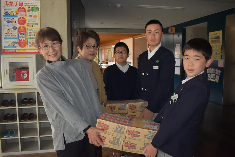今日も教室を入れ替えての給食をしました。仲良く挨拶を交わし、小学生のお手伝いに中学生が来てくれて、心も温かくなりました。