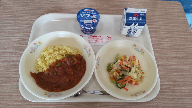 今日は2学期最後の給食でした。クリスマスケーキは小さめのカップケーキで、いちご、チョコレート、抹茶、塩キャラメルから選んでもらいました。おいしいお茶所だからでしょうか、一番人気は抹茶でした。1年生ははちみつ&マーガリンのディスペンパックに喜んでいました♪お昼の放送は、野菜のパワーは長くは続かないので毎食野菜を食べましょうという話をしました。冬休みも楽しく食事して、元気に過ごして欲しいと思います。