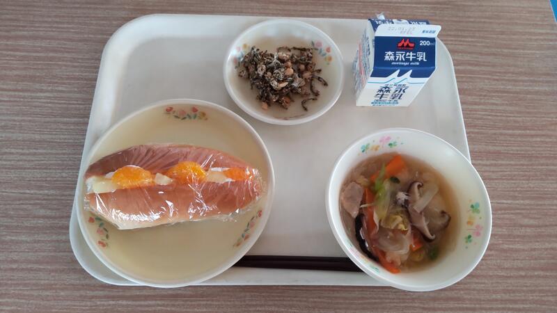 今日はリクエストのフルーツパンでした。生クリームとフルーツだけの簡単な料理ですが、給食で出るとなると特別なようでした。給食時間の放送で動画を見てもらったので、今度はぜひ自分で作ってみましょう。
