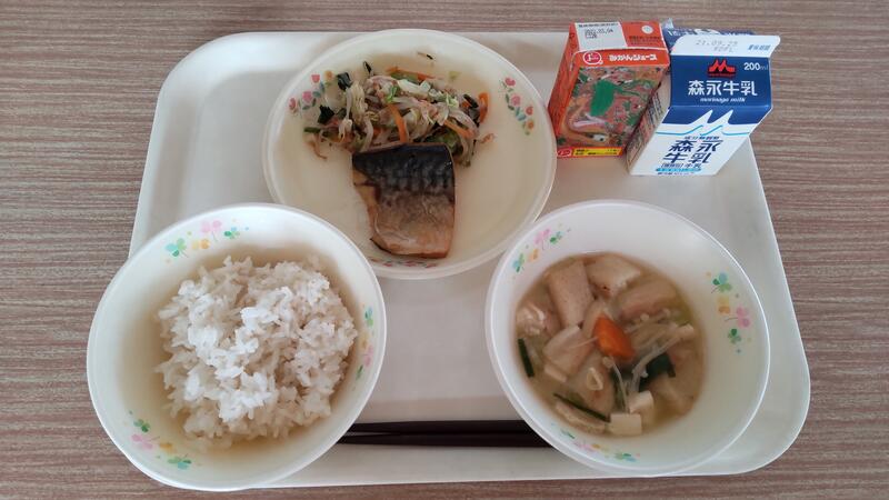 小松菜ともやしの和え物 牛乳 みかん果汁