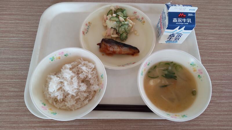 今日の焼き魚は魚屋さんの脂ののった塩さばでした。皆さんは同じ鯖でもいろいろあることを知っていましたか?一般的にサバと言えば、マサバのことを言います。脂肪分が多くてうま味が濃いのが特徴です。今からが旬です。ゴマサバは腹の部分にゴマをふったような斑点があります。タイセイヨウサバは背中の模様が黒くて太く、はっきりしています。脂ののりがよく、干物や塩サバなどに加工されます。サバを食べるときに、どのサバなのか考えてみるのもおもいろいですね。