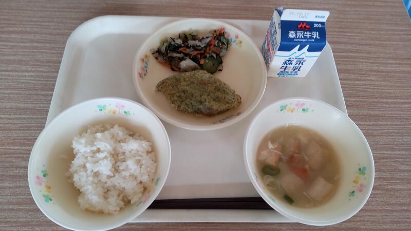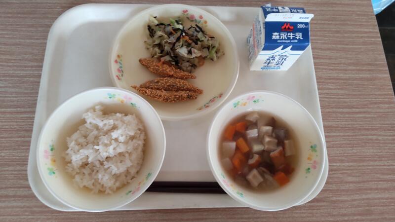 今日は地味な献立でしたが「おいしかったです。」と何度も声をかけてもらいました。キビナゴは苦味が気にならないように甘辛い下味がついていて、じゃがいもで作った香ばしい衣がカリカリッとしていました。今日はとても寒くなったので、温かいのっぺい汁が余計においしく感じられたのでしょう。まだまだ寒さはこれからが本番です。給食を楽しみにしてもらえるよう、温かくおいしい給食作りに励みたいと思います。