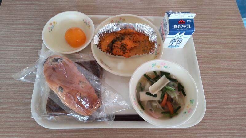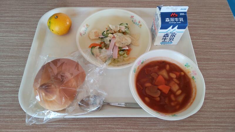 今日は切りこみの入ったコッペパンに細長いハンバーグと野菜を挟んで食べてもらいました。2年生の児童が「これ何?」「ハンバーグじゃがない?」とのぞき込んでいました。同じ料理も盛り方次第でおいしくなりませんか?子どもは特に自分で包んだり挟んだりすると、食欲が増すようです。山鹿には豆腐を三角形に切った”豆腐汁”という郷土料理があります。「豆腐をとても小さく切ったみそ汁はおいしい」と言う人を知っています。同じ味でも切り方一つで食欲が増すことはしばしばあります。まずは、おいしそうによそってみませんか?