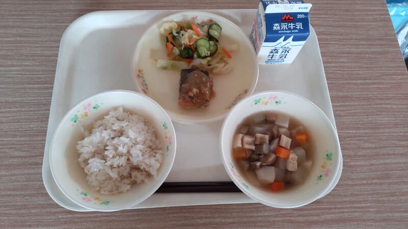 今日は熊本県の郷土料理のお姫さん団子汁でした。皆さんはどんな団子汁(すいとん汁)を食べますか?私はこれまで勤務した地域だけでもたくさんの団子汁を知ることができました。ジャガイモを使ったせんだご汁、そら豆や小豆をつかった団子汁、伸ばした生地を包丁で短い麺状に切る押し包丁、サツマイモを団子で包むお姫さん団子汁、黒米を練り込んだ団子汁…。どれも食材の特徴がいかされていておいしかったです。今、給食では、中力粉と米粉を半々の割合で配合して団子を作っています。もちもちしていてコシがある団子になります。毎月違った団子汁を紹介したいと思います。どうぞ楽しみにしていてください。