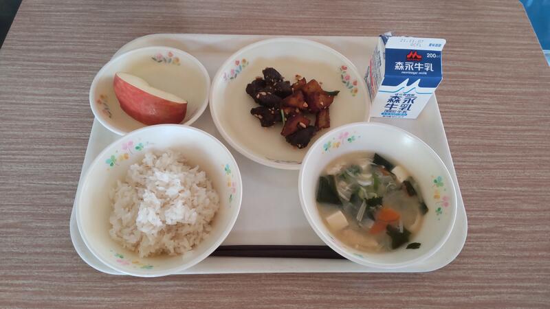 茎わかめのきんぴら りんご 牛乳