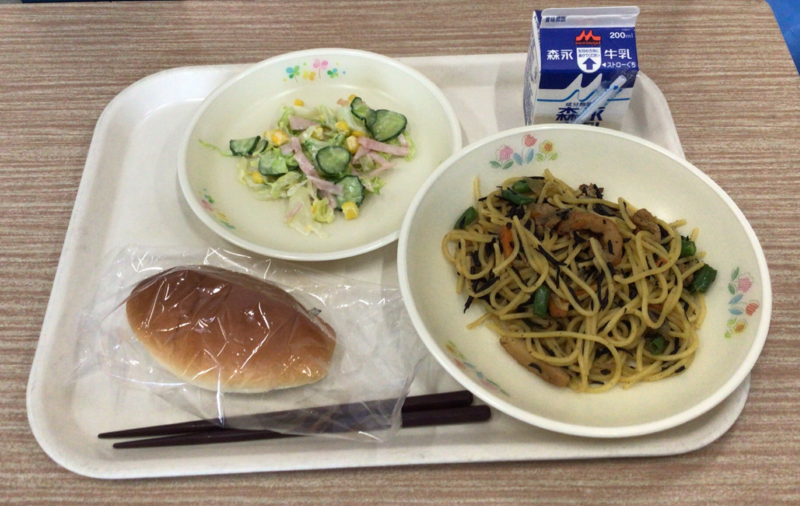 牛乳 パン ひじきスパゲティ マヨサラダ