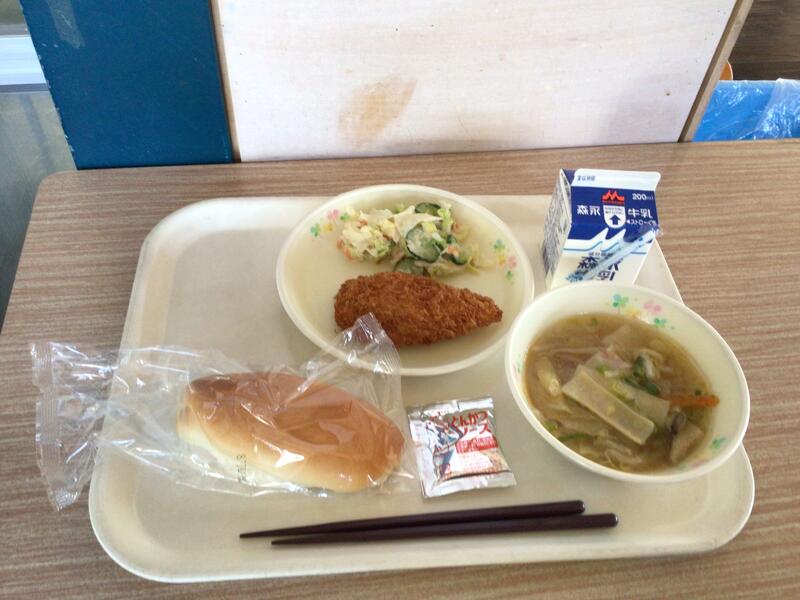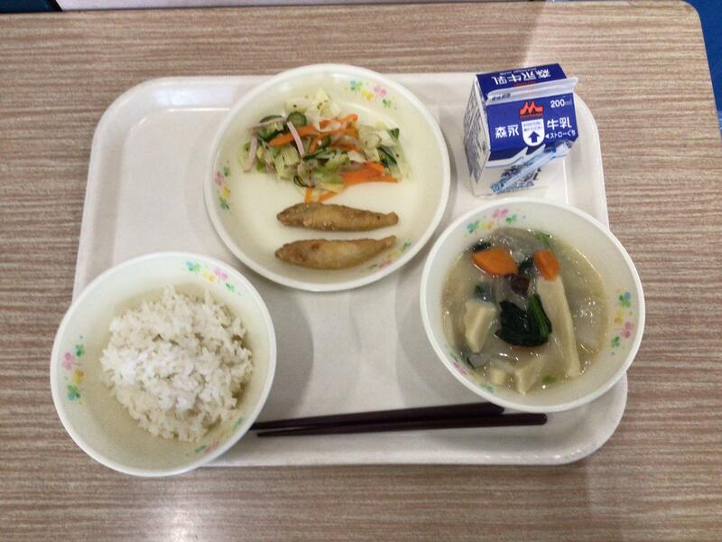 牛乳 麦ご飯 武光公鍋 わかさぎのフリッター サラダ