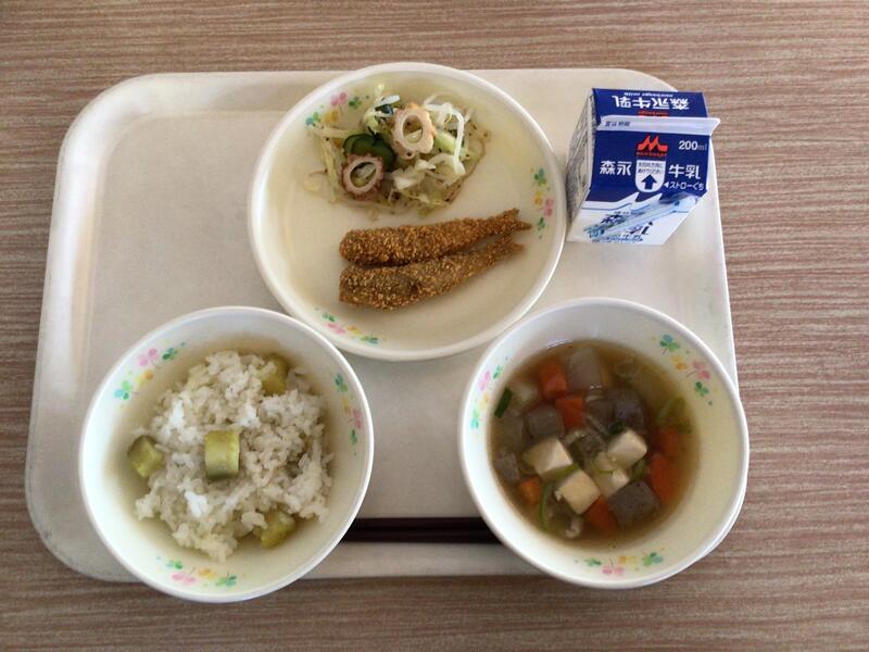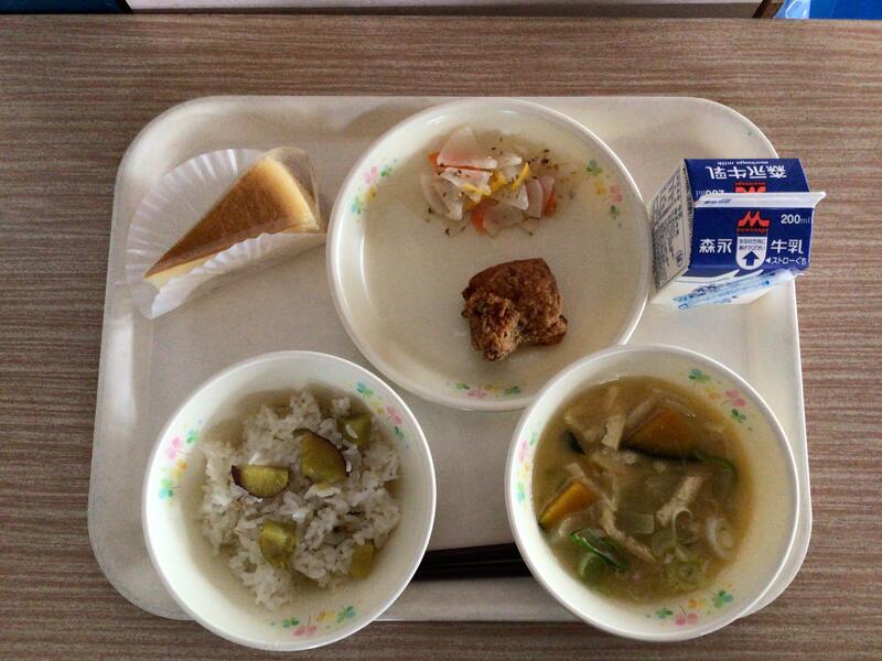 牛乳 さつまいもご飯 かぼちゃのみそ汁 鶏のからあげ