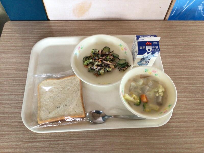 牛乳 パン 冬野菜シチュー 豆ひじきサラダ