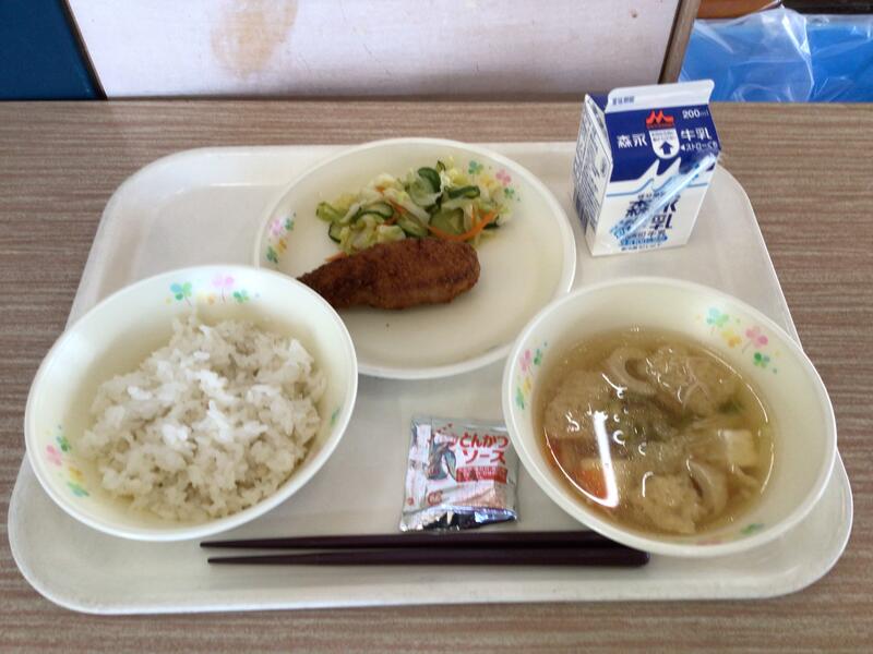 牛乳 麦ご飯 豆腐汁 チキンカツ