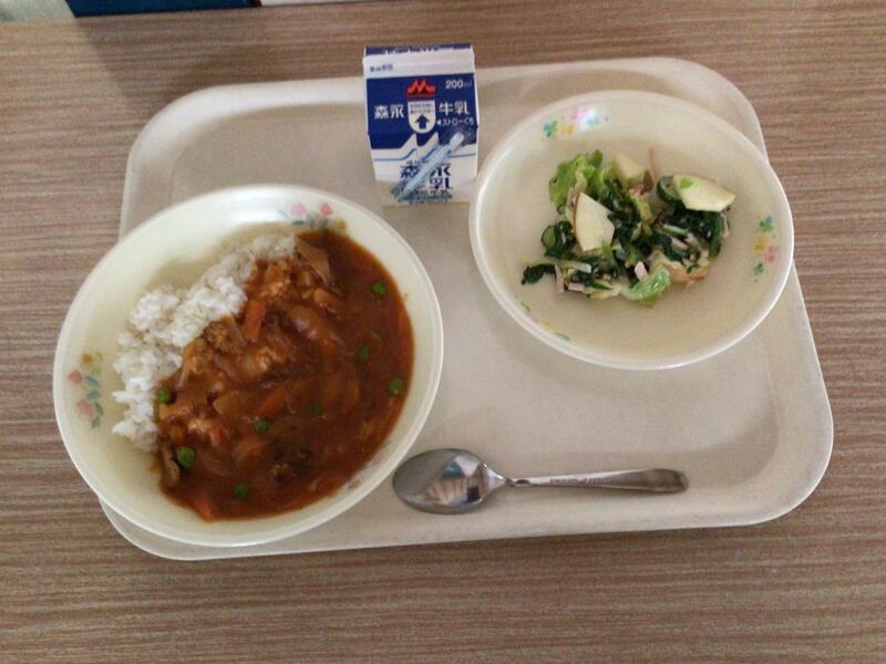 今日は、りんごサラダです。りんごの歴史は古く、約4000年前には栽培されていたと言われるほどです。日本は、約2000種類のりんごが栽培されています。『ふじ』や『王林』『シナノゴールド』『ジョナゴールド』などがよく聞く名前ですね。りんごは、動脈硬化や骨粗しょう症、高血圧などの生活習慣病の予防効果が期待できます。今日は、今が旬の白菜も入ったりんごサラダです。健康のためにもしっかり食べてください。
