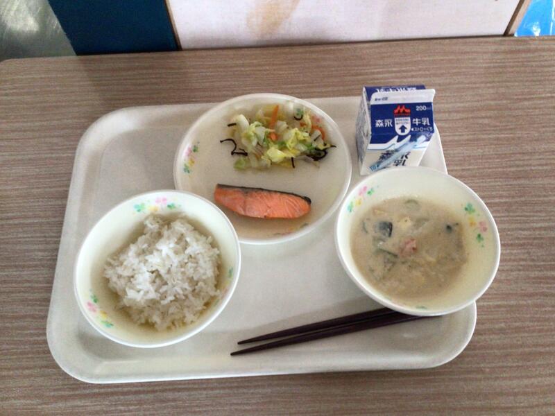 今日から全国学校給食週間の初日です。1月24日は、給食記念日です。日本の学校給食の歴史は、22年山形県鶴岡市の忠愛小学校で、お弁当を持ってこれない子どもに『おにぎり』『焼き魚』『漬物』を出したのが始まりです。今日の給食は、その冬至の給食献立になっています。普段食べている給食と比べながら食べてみてください。今回の塩鮭は、高級塩鮭となっています。おいしいですよ。