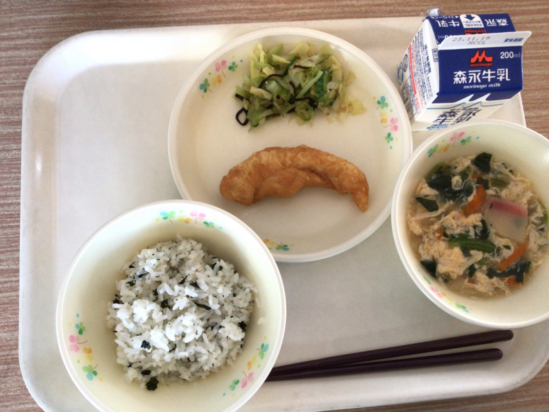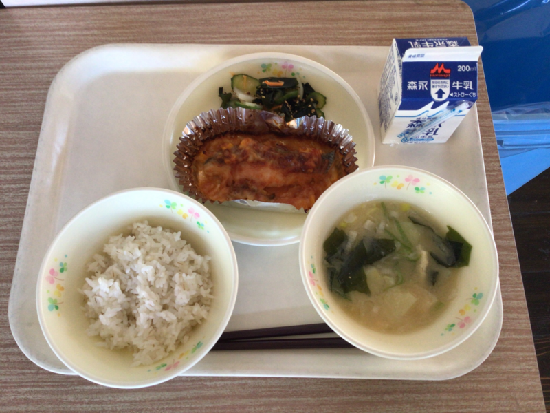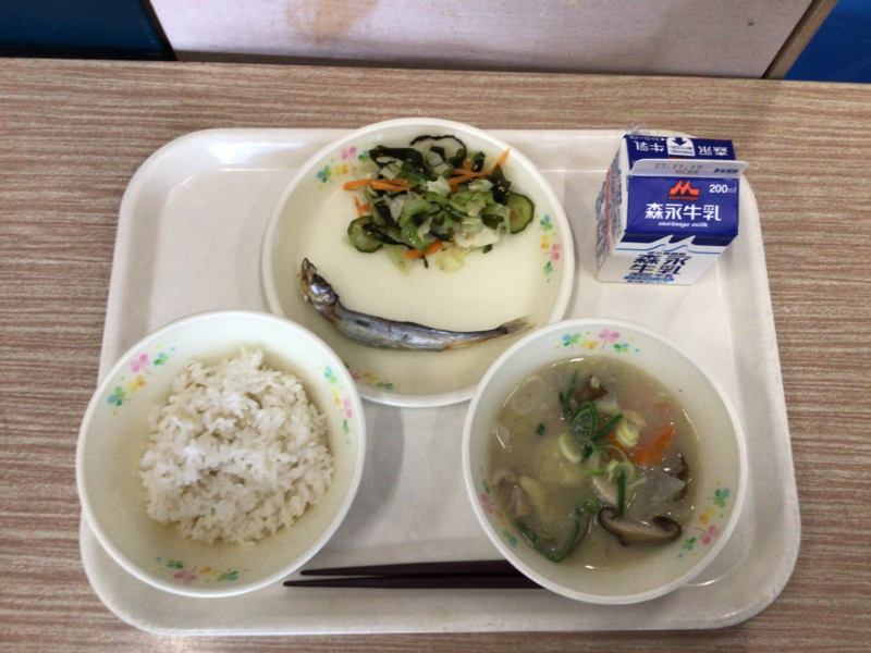 牛乳 麦ご飯 わかめスープ