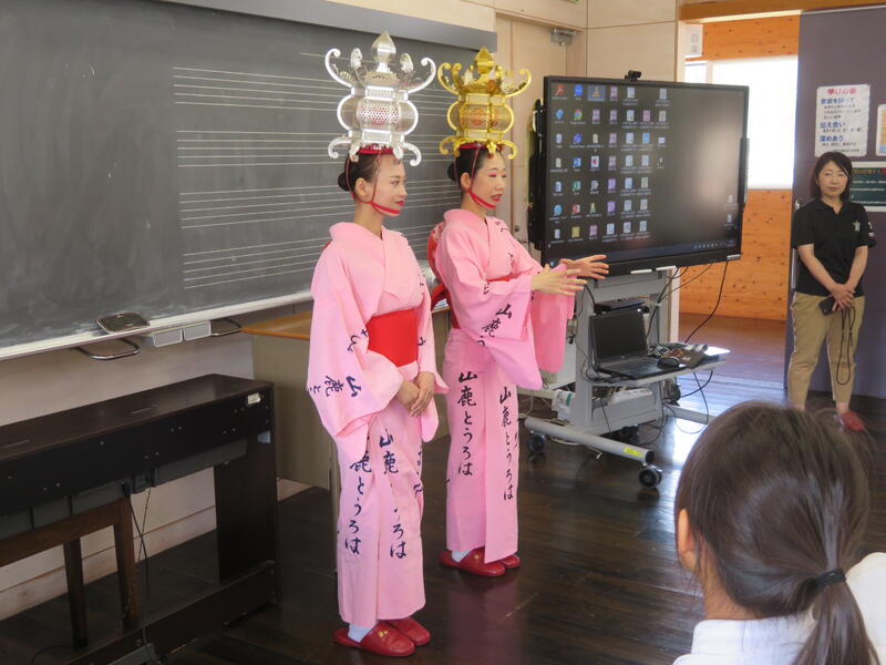 26日(火)に、「灯籠踊り保存会」の皆様にお越しいただき、4年生に灯籠踊りの歴史や踊り方を教えていただきました。4年生の社会科では、地域の魅力を見つめ直し、ふるさと山鹿に誇りがもてることをねらいとした学習に取り組んでいます。今回の体験を通して、来年の山鹿灯籠祭りを見に行きたいという子や子ども灯籠に参加してみたいという子がたくさんいました。