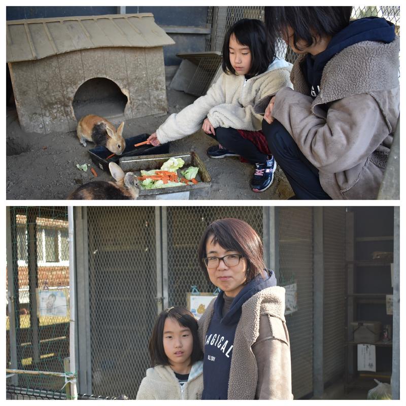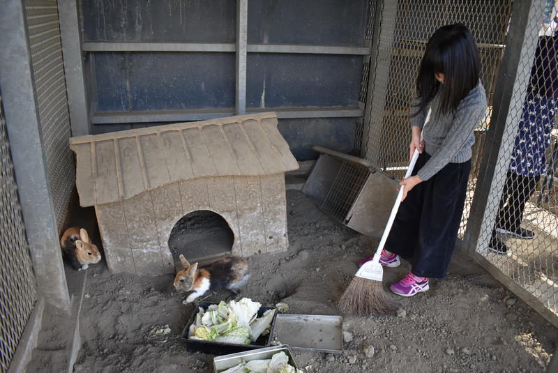 今日(18日)は、みひろさん母子が、ウサギのお世話に来ていただきました。お母さんが、久々に平日のお休みがとれたことから来校が実現しました。