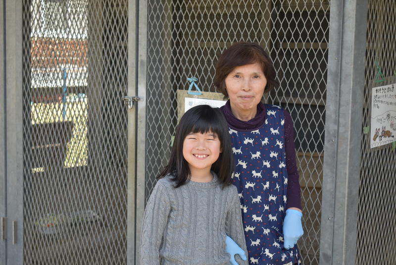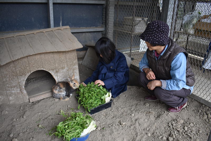今日はりりなさんとおばあさんが、ウサギのお世話のために来校してくださいました。