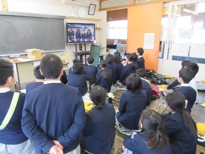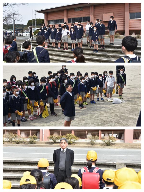 下校の間際、5年生児童会の発案で、6年生に向けたメッセージ発表がありました。24日の卒業式に、在校生は参加できません。このままでは6年生とお別れはできないということで、急遽計画されました。力強い在校生の言葉を聞き、6年生も喜んでくれたようです。