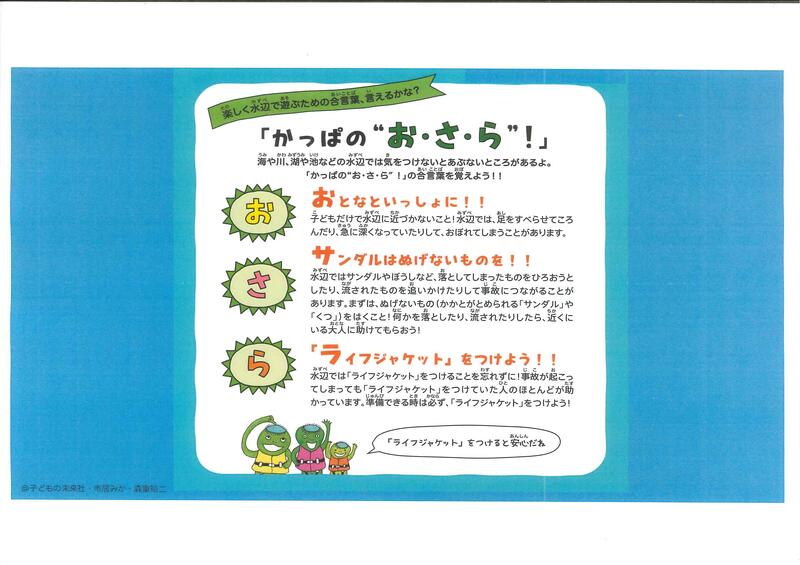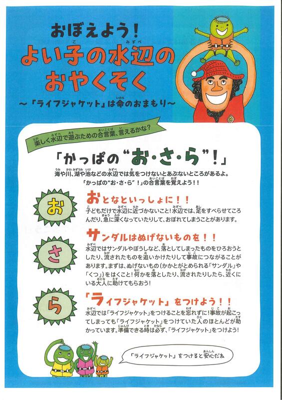 水難事故防止についての「リーフレット」を掲載いたしました。ご確認の上、子どもたちへのご指導とお声かけをお願いいたします。