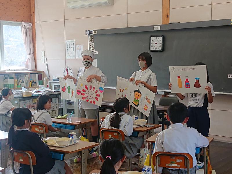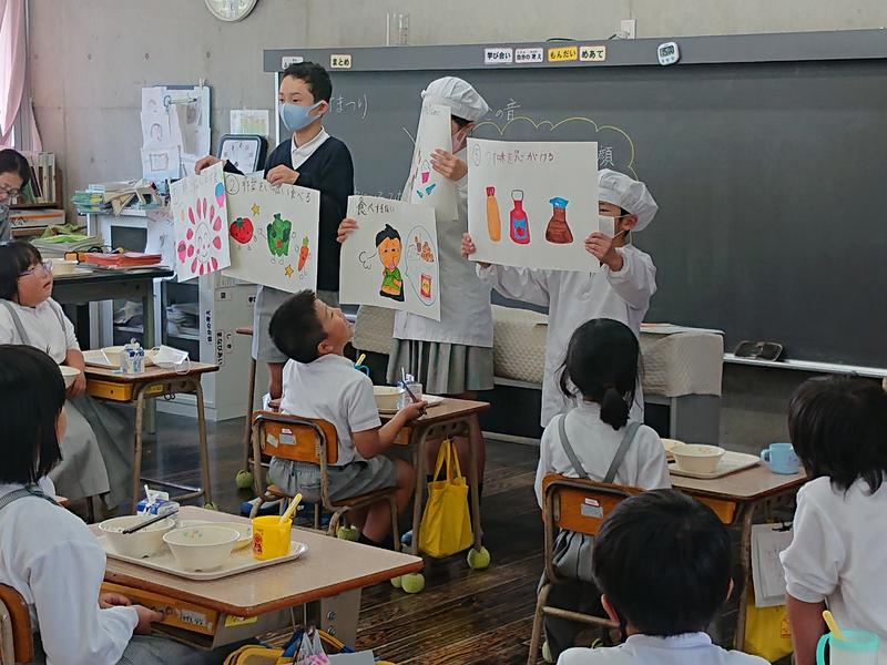 そこで食についての啓発も行おうということで、6つの気を付けてほしいことを、給食時間におじゃまして話しました!