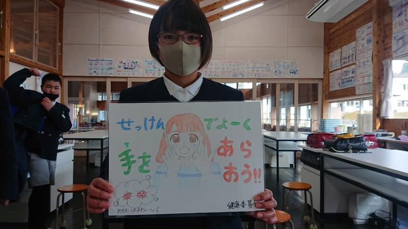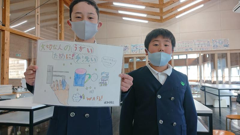 この後、健康委員会の想いがこもったポスターを各クラスに掲示しました。ポスターをみて感染症予防のための意識を高めてくれればと思います!