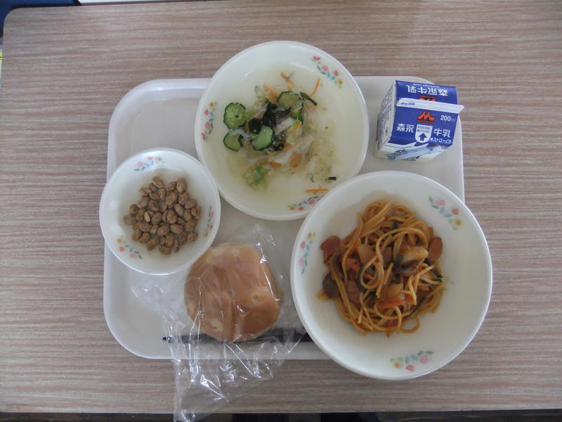大量調理では麺料理が難しいと私は思ってます。まず混ぜるにも量が多いこと、できたてを食べることができないこと、おかずを入れる食缶の中で保温されてしまうこと…で麺がどうしても伸びてしまいがちです。そのため、家で作るよりもいろいろと気を使います。料理に合う麺選び、水分量、加熱時間、配缶時間…調理員さんの腕の見せどころです。ここの調理員さん方も料理上手なので、おいしく仕上がっていると思います。これからもいろいろ改善しながら、よりおいしい給食になるよう力を合わせて頑張ります !