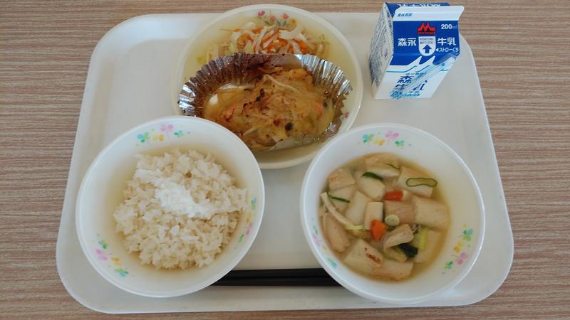 麦ご飯 牛乳 鮭のチャンチャン焼き 胡麻和え