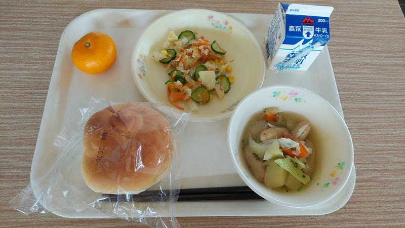 ひのくにパン 牛乳 ポトフ ツナサラダ みかん