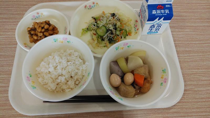 麦ご飯 牛乳 おでん ごまじゃこサラダ 座禅豆