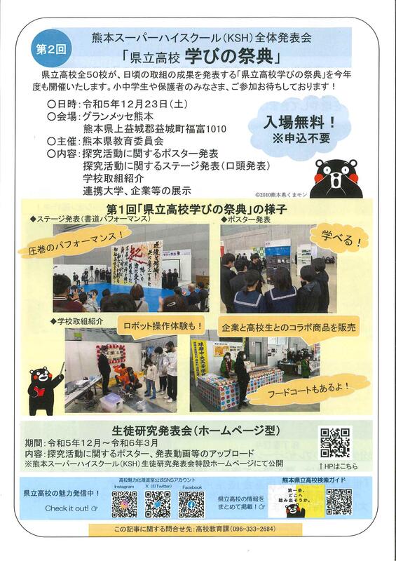 熊本県教育委員会より県立ゆうあい中学校(夜間中学)の令和6年4月開校のお知らせが届きました。
