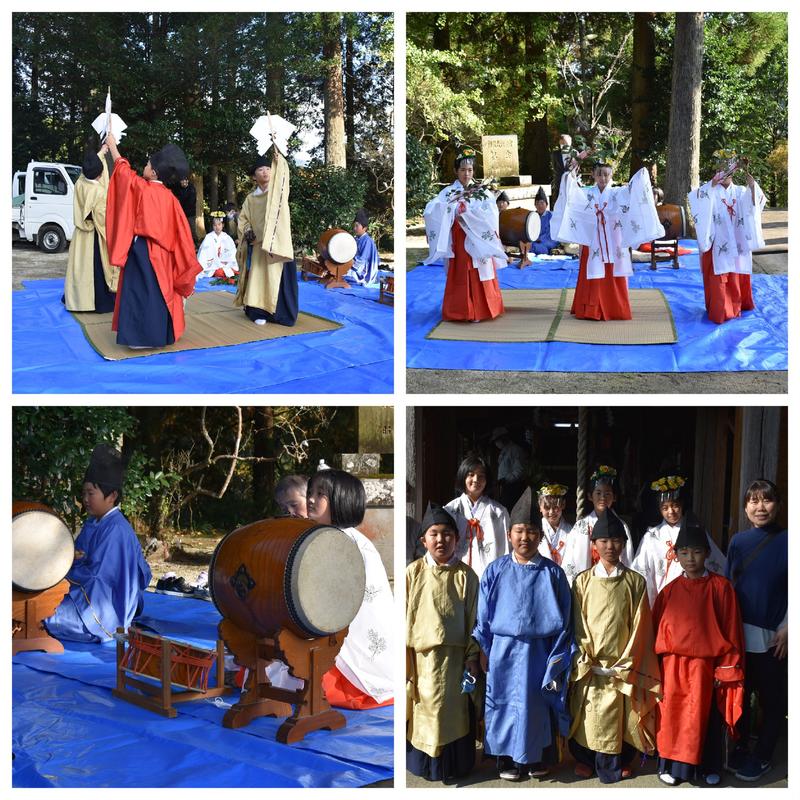 学習の成果を披露する機会として、11月23日に、芋生神社、岩野神社で行われる神楽奉納を行います。その練習も頑張っています。