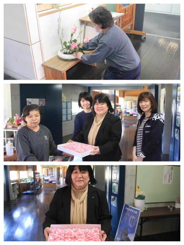 昨年もご紹介しましたが、定期的に職員室前に花を生けてくださる古田さんが、新入生の入学をお祝いするためにコサージュを届けてくださいました。