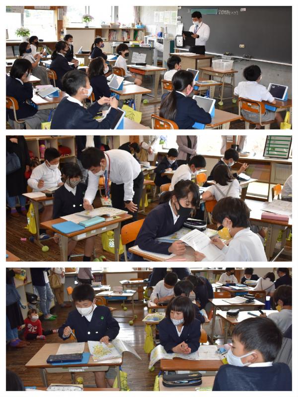 4年生は理科。人間の体のつくりを学んだあと、他の動物は人間と違いがあるかについて調べ、発表し合っていました。動物の特徴を捉え、面白い発想による発表が行われていました。